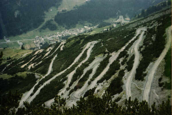 August 1989, Seealpen: Der Tendapass mit 42! Kehren auf Schotter. Einer der schönsten Pässe überhaupt, dazu nur 30 km bis zum Mittelmeer!