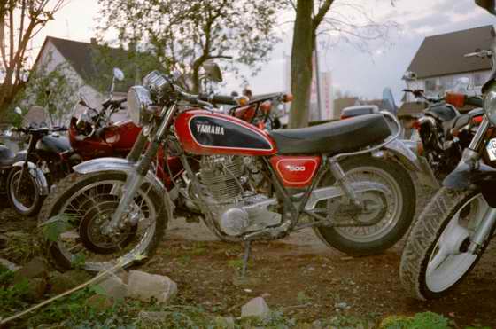 Einmal in Fahrt geraten fühlt man sich gleich heimisch. Im Vergleich zu MuZ und XBR wirkt alles etwas filigraner, aber sympathisch. Fährt sich wie ein Mountainbike. Lockeres Kurvenschwingen ist easy, dank aufrechter Sitzposition. So übel wie ich befürchtet habe ist das Fahrwerk auch nicht. Gut, die PS gepachtet haben die Einzylinder alle nicht, aber man muß die Leistung ja nur ganz auf die Straße bringen! Immerhin geht das bei der SR ab 1500 U/min. Punch von unten raus ist da und der Motor hängt spontan am Gas. Kurve - und die Bremsen? Da hat der Besitzer investiert und eine zweite Scheibe angeflanscht. Geht deshalb auch in Ordnung!