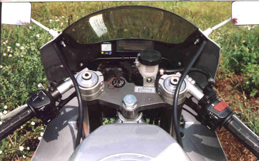 Das ledergepolsterte Vesperbrettchen ist bequemer als es aussieht, die Lenkerstummel passen, Bedienamaturen sind gewohnter Yamaha-Standard und alles ist das wo es hingehört. Alles? Nein, im Cockpit mußte Drehzahlmesser und Tacho dem Sportsgeist der Besitzers weichen und so ruht einsam nur ein Sigma-Fahrradtacho, sowie die Kontrolllampen in der Tiefe des Verkleidungsoberteils.
