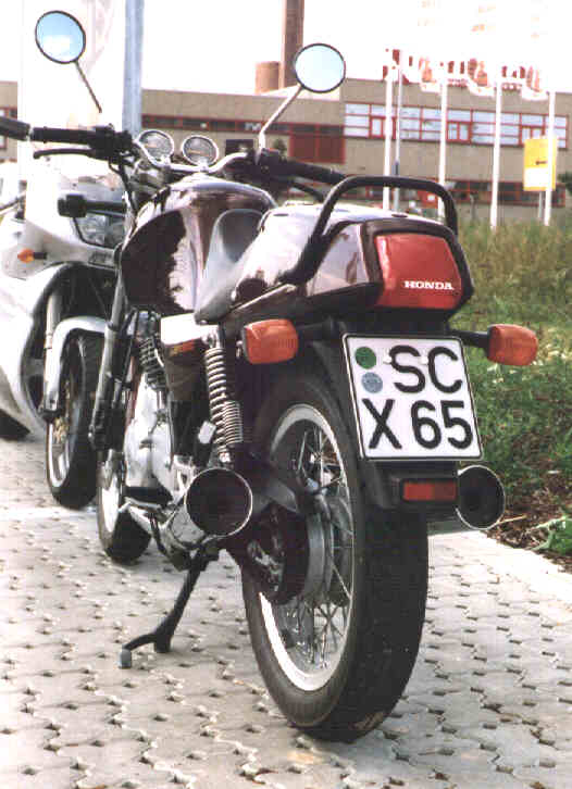 Der Umstieg zurück auf die BubBub-Honda fällt leicht. Ich werde mir der Stärken des Motors dieser bereits mind. 15 Jahre alten Konstruktion bewußt. Laufruhe, Haltbarkeit und vor allem der Sound (wie eine halbe DUC) suchen noch immer vergleichbares bzw. wesentlich Besseres. Ach könnte Honda mir doch meinen Top-Eintopf auf die Räder stellen: Den XBR-Motor mit seiner 83 dB Doppelauspuffanlage, mind 650 ccm (ja,ja gibt´s ja schon in der Vigor, SLR und NX), satten (echten!) 50 PS und das Ganze klassisch mit viel Chrom und Speiche im Stile einer GB 500 Clubman (Gruß an den GB-Stammtisch) mit einem zeitgemäßen Fahrwerk und Bremsen.