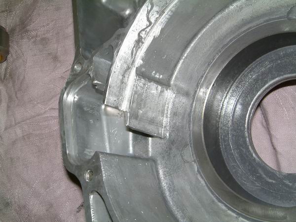 Und auf der Alpentour ist dann auf dem Rückweg irgendwas kaputt gegangen (Mist, Mist, Mist...)Die endgültige Diagnose lautet Kurbelwellenschaden. Die Anlaufscheibenhat's zerlegt und auch noch ein paar unnötige Ecken im Gehäusemitgenommen. Wenn man sich in der Scene umhört scheint das bei den getunten Modellen öfters vorzukommen.