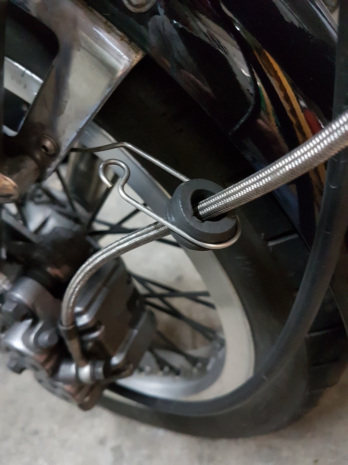 Der Originalhalter war gebrochen, das Teil ist aus einer Fahrradspeiche entstanden die dünner ist, daher die enorme Gewichtsersparnis.