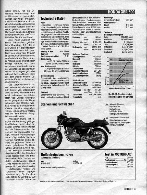Die XBR ist Baujahr 1985 (EZ 04/1988) und eine vom Werk aus gedrosselte 27PS-Version. Diese ist nach Abgleich des Baujahres und der Seriennummer über die Nockenwelle, die Vergaserhauptdüse und das Antriebsritzel gedrosselt.
