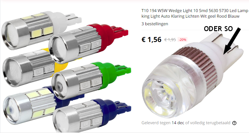Alternativ kannst Du es auch beim Autohändler versuchen. Ältere Fahrzeuge, oder auch neuere, die noch nicht total auf LED gebaut werden, haben solche oder ähnlich Lämpchen im Kombiinstrument verbaut. Für die Instrumentenbeleuchtung, also Tacho und DZM, bin ich bei Peugeot fündig geworden. Wobei die nicht markenspezifisch sind. Auf der Schachtel stand jedenfalls "Würth" drauf. :lol: