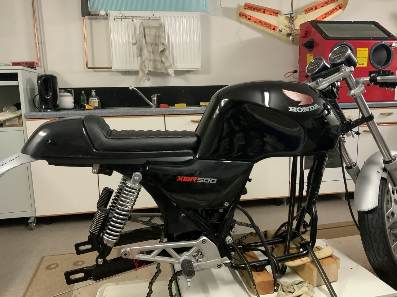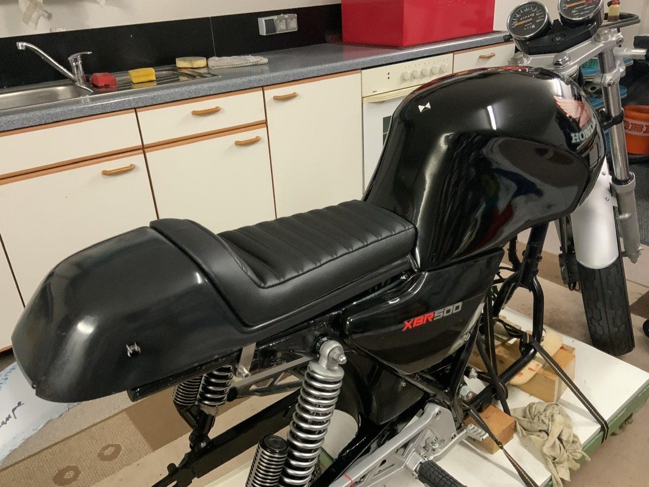 18 Feb. 2021 11:04Entweder kommt ein Kasten auf den Träger hinter der Lampe oder eine „Wurst“ aus einem (Reifen)Schlauch. Die nächsten Schritte sind jetzt die Verkleidung auszurichten und den Scheinwerfer befestigen. Dann kommen alle Hebeleien und Schalter an den Lenker und es geht ans elektrische.