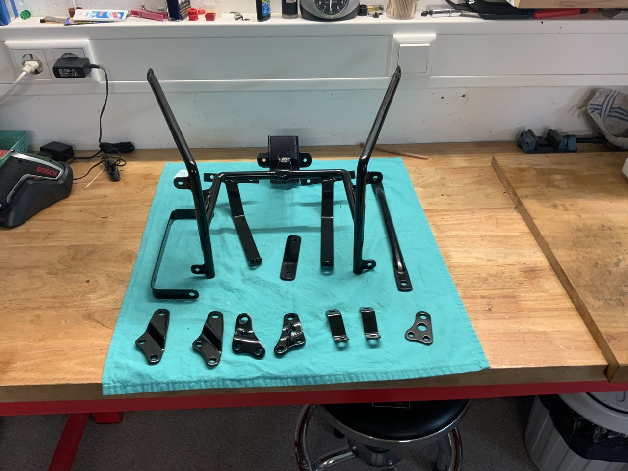Bei der XBR geht alles komplett unter den Tank aufs Rahmenrohr.