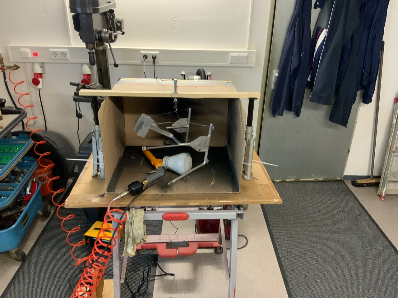 Entweder kommt ein Kasten auf den Träger hinter der Lampe oder eine „Wurst“ aus einem (Reifen)Schlauch. Die nächsten Schritte sind jetzt die Verkleidung auszurichten und den Scheinwerfer befestigen. Dann kommen alle Hebeleien und Schalter an den Lenker und es geht ans elektrische.