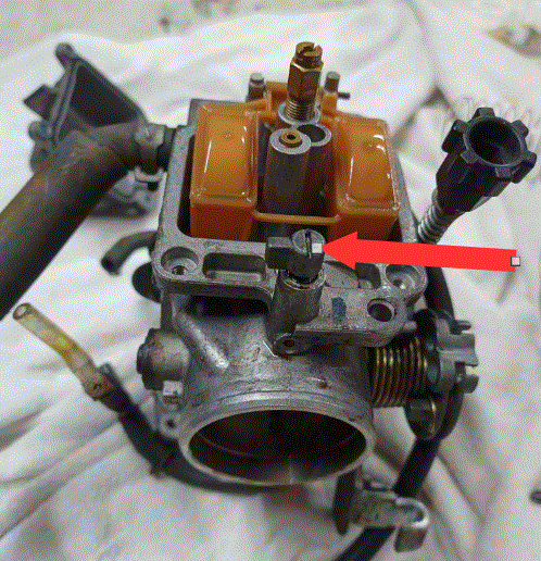 Wenn Du die rausdrehst, ist dort eine Feder, ein Scheibchen und ein kleiner O-ring, Der O- Ring wird üblicherweise übersehen, wenn er im Loch drinbleiben will oder nicht drauf geachtet wird. Er. ist teilweise entweder rissig oder schon zerbröselt und nur selten noch tauglich.. Mittlerweile halte ich es für nicht unwahrscheinlich, daß das ein gar nicht so selten vorkommender Grund sein könnte, wieso Vergaser nach einer "richtigen Reinigung" nicht mehr richtig laufen.