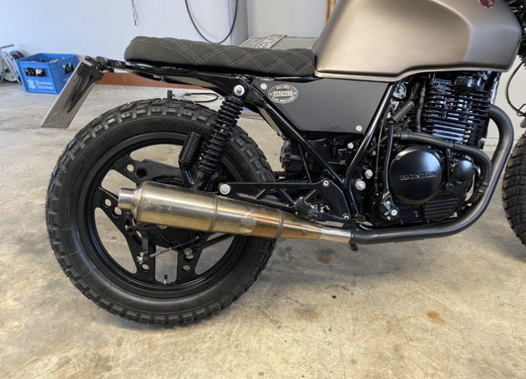 der Topf ist komplett gleich konisch und kann dann auf der linken Seite um 180° verdreht angebaut werden. Anpassung an den Krümmer muss am Motorrad gemacht werden um den richtigen Winkel hinzubekommen. Hab dann jeweils ein 4mm Flachstahl an die vorhandene Befestigung angeschweiß und am Original Anschraubpunkt verschraubt, sieht so eigentlich recht sauber aus. Einzig wo die 180° Drehung auffällt, ist am Auslassstück, dieses geht um ein paar Grad nach unten und auf der anderen Seite dann natürlich nach oben, fällt aber kaum auf. Werde aber hinten noch einen Edelstahl Konus anschweißen, so das die Optik in etwa wie bei den Conic Töpfen aussieht. Danach wird das ganze noch schwarz lackiert.