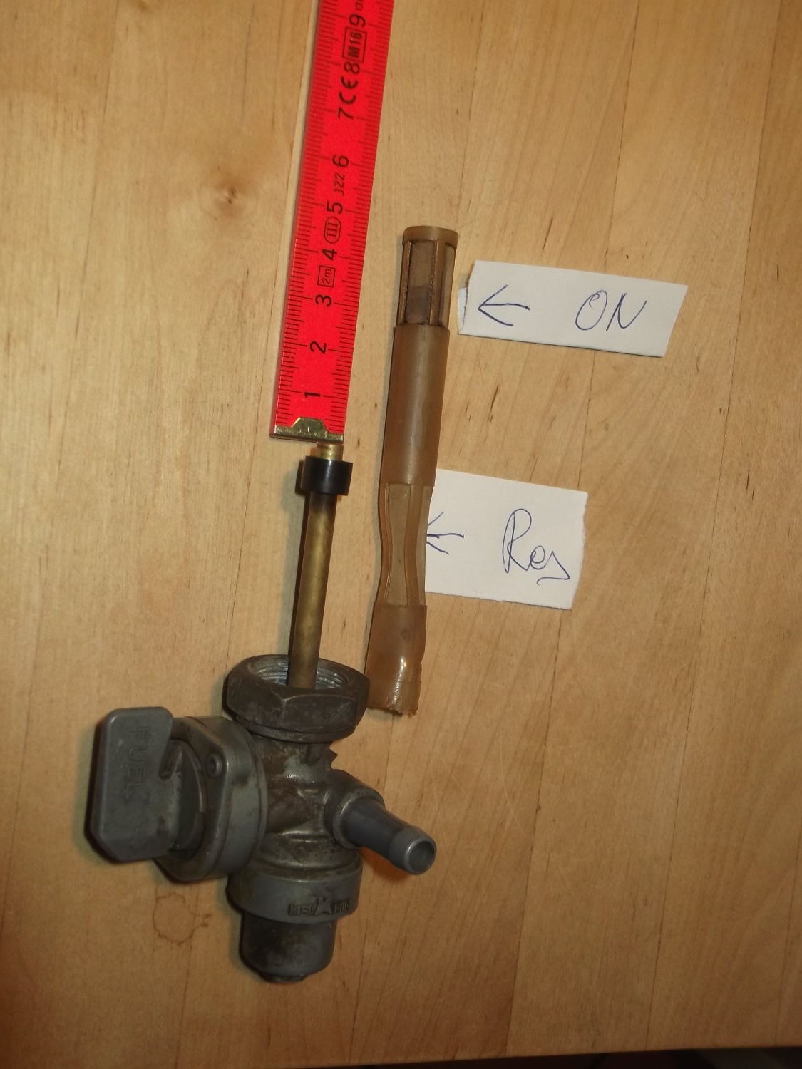 Wie hier gezeigt hat das original BEnzinsieb auch die Funktion das Steigrohr zu verlängern, so dass in Stellung "on" noch eine etwas größere Reservemenge verbleibt als es der Fall ohne das Sieb ist