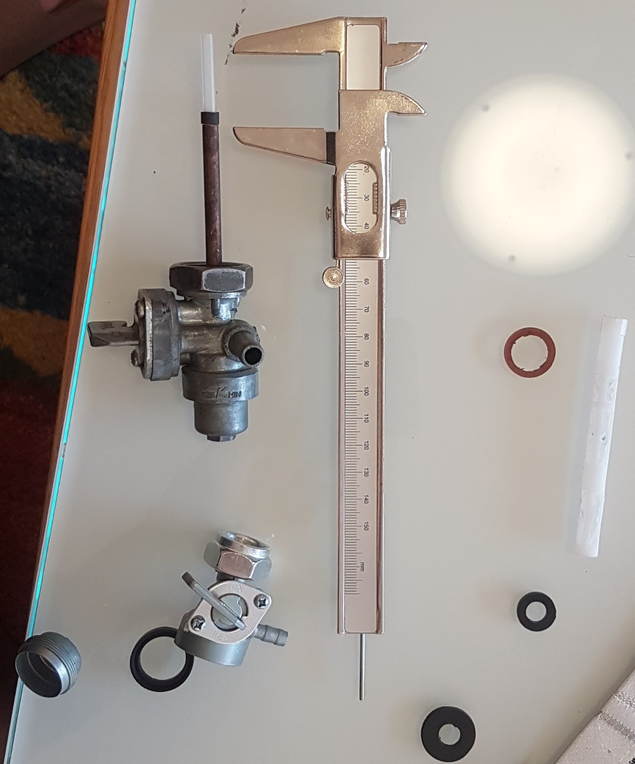 mein Benzinhahn wird auch gerade revidiert . Hab mir bei Ebay Kleinanzeigen eine 4-Lochdichtung gekauft und brauche nun noch das Sieb, am besten mit richtigem Überlauf. Deshalb habe ich auch einen M20 Benzinhahn mit Auslauf nach unten bestellt. Das dort verbaute Sieb ist mit einem Gewinde in das Gehäuse des Hahn eingeschraubt und passt leider nicht in den original Honda Hahn.