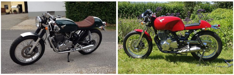 Hierbei wurde entweder der Tank einer Clubman ( ! ) oder - mit entspr. Anpassungsarbeiten - der Tank einer Honda CB 500 Four verwendet. Ich habe auch schon Umbauten mit Tanks von der CX 500 oder CB 400 Four gesehen. Man landet also scheinbar oft im Honda-Lager. Beim Thema Cafe-Racer kommt man dann um eine Kürzung des XBR-Rahmens nicht herum und der Stress mit den Herren in blauen Kitteln ist dann mehr oder weniger vorprogrammiert. Ein billiges Vergnpügen ist das Ganze dann meistens auch nicht.