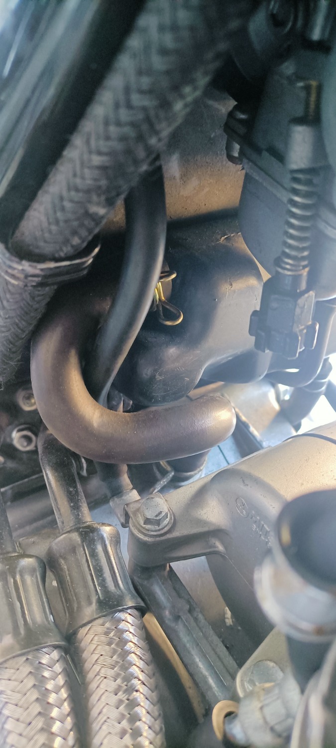 Die Entlüftung an dem Motorrad ist angestöpselt an die Kurbelgehäuse Entlüftung dann folgt ein T-Stück.