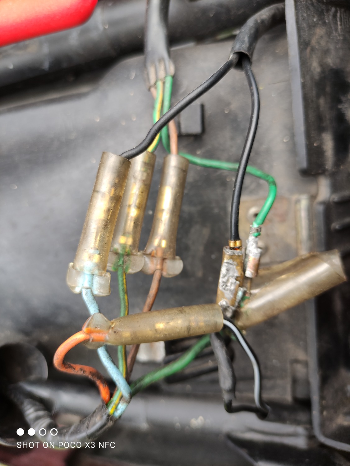 Am wahrscheinlichsten, meine ich: die Kabelpaare der Blinker selbst (schwarz +schwarz/weiß) in den Röhrchen der Blinkerhaltern. Da paßt es ganz eng, während es auch noch vibriert und/oder angestoßen werden kann. Und die Verteilung nach schwarz sieht auf dem Bild ganz schlampig gemacht aus.