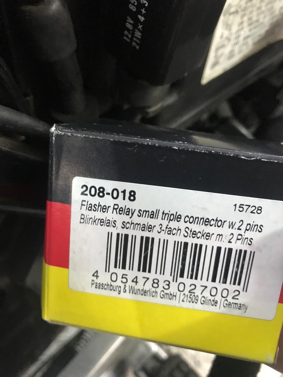 Für den Anschluß des Relais nimmt jetzt ein bezahlbares lastunabhängiges Blinkrelais mit Befestigungsloch und gleich mit einem solchen dreier Stecker die ich im Elektrikwerkzeug tread beschrieben habe.