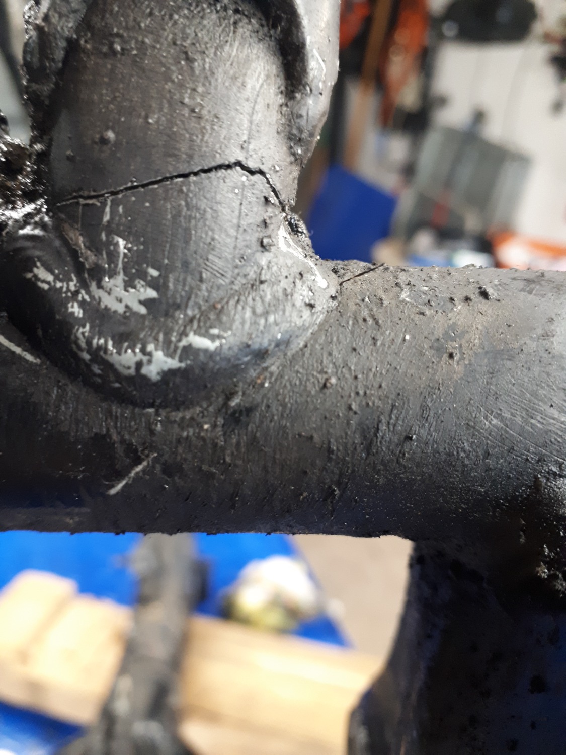 ich wollte heute eigentlich meinen Rahmen zum strahlen vorbereiten und finde diese Bruchstelle.