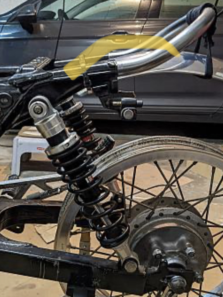Ich habe einen Shark Retro Auspuff und einen 2-1 Krümmer von ABP Racing gekauft. Den Anschluss zwischen Krümmer und Endtopf muss ich noch anpassen-