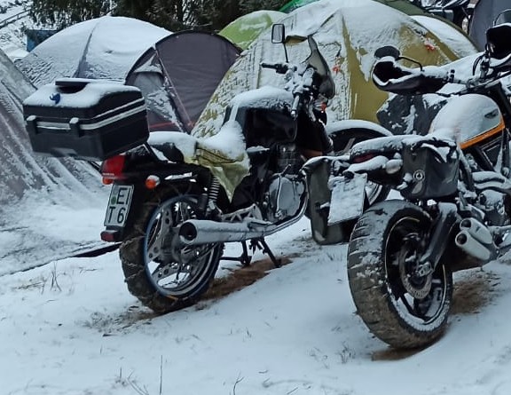 Ich war gestern auch bei einem Grad mit der Goldwing unterwegs, aber konnte auf Schneeketten und höhergelegten Kotflügel verzichten...