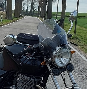 Der Windschutz bei langen (an-) Fahrten ist nicht zu unterschätzen, viel komfortabler, wenn der Wind ab 80-100 km/h böig ist und an allem zerrt, das sich am Lenker festhält.