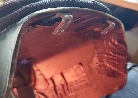 Die Metallhaken halten den Höcker an der hinteren Kante der Sitzbank fest.