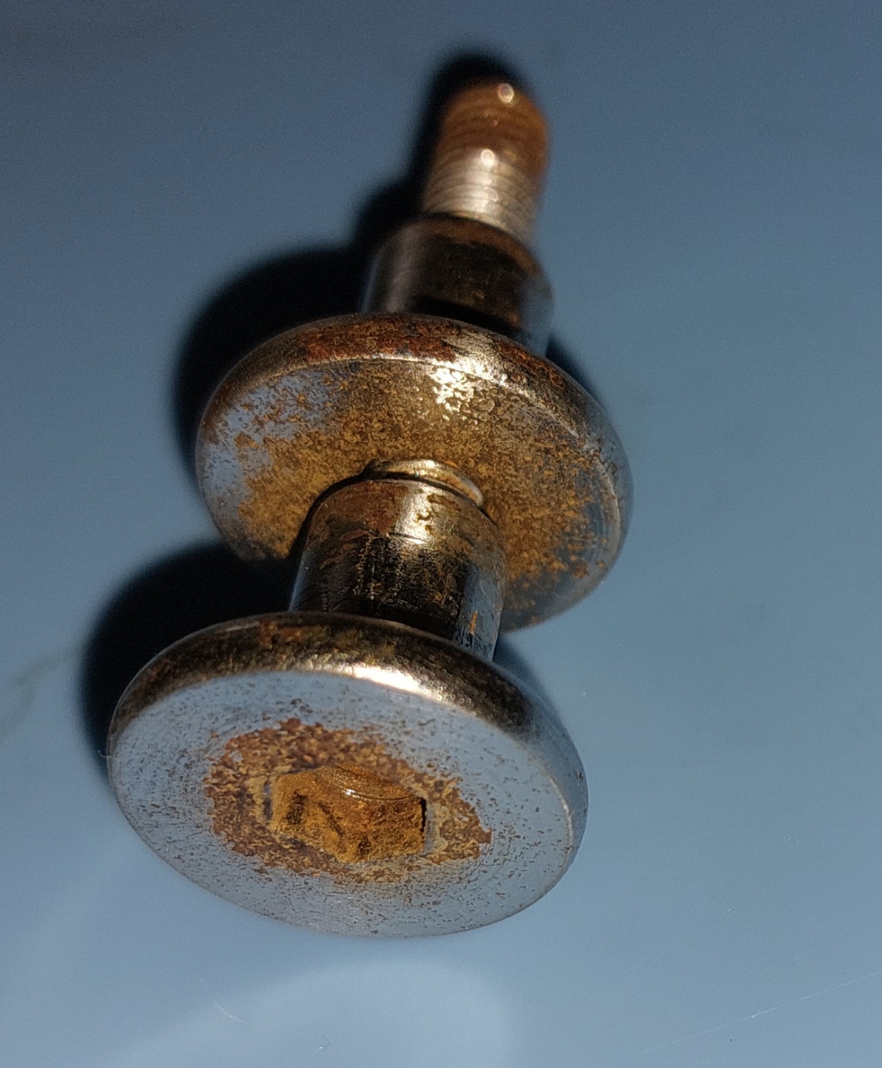 dann fehlte dir aber nicht die Schraube auf dem 1. Foto. Den fehlenden Bund an der Baumarktschraube kann man mit einer gekürzten Gewindehülse herstellen, eventuell reicht es auch eine Stoppmutter zu verwenden.