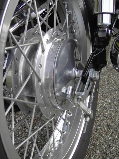 polierte Naben in Vorder- u. Hinterrad, verchromte Fußrastenhalter mit LSL Alu Rasten,