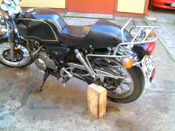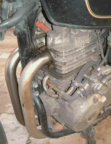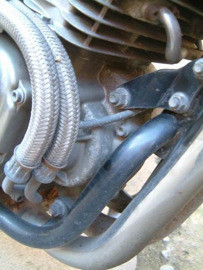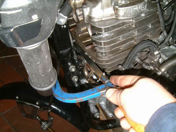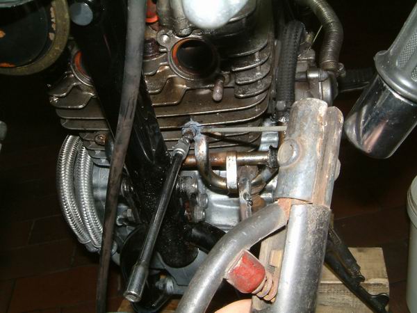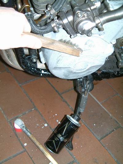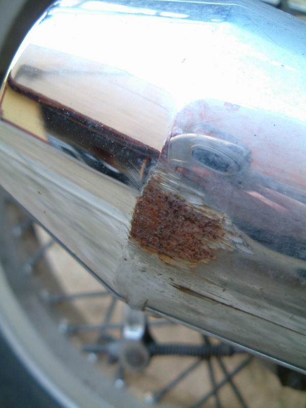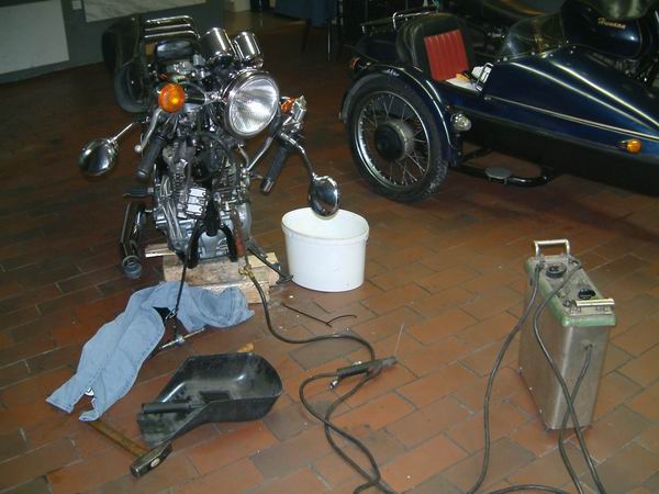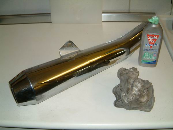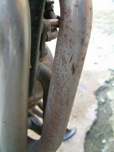 Wenn der Rost nicht zu tief sitzt bekommt man das mit Stahlfix Classic wieder hin.die Rückseite wird zum besseren Schutz silbern lackiert. Der Auspuffkrümmer ist nicht mehr zu retten glücklicherweise findet sich im Keller eines Clubmanfreundes noch ein gutes Exemplar. Als nächstes muß das Geschwür weg. Ihr wisst schon was ich meine....