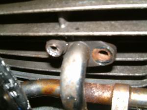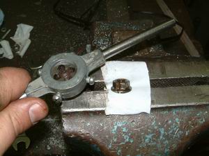 Rost überall und der Stehbolzen von der Krümmerschraube hat sich auch entschlossen mit der Mutter rauszugehen, na gut Mutter aufsägen (nicht was Ihr denkt) Gewinde nachschneiden und den Bolzen wieder einschrauben/kleben