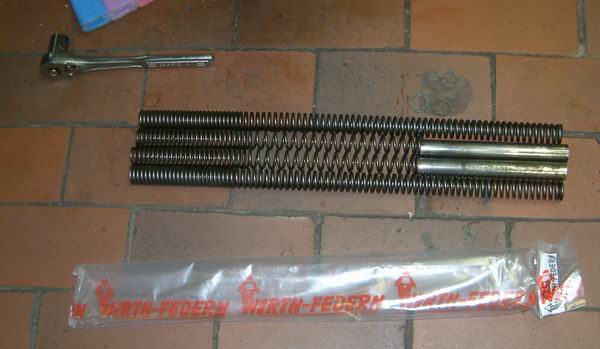 Weil wir schon dabei sind werden die Clubbifedern auf Wirth umgestellt, die Gleitrohre abgeschmirgelt und Metallic lackiert.