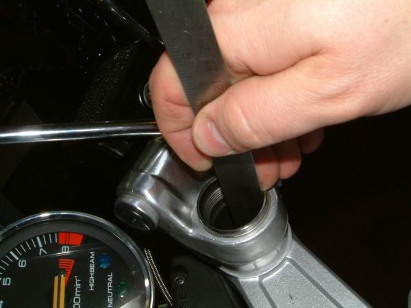 Da wird ja im Phorum immer wild spekuliert welches Gabelöl das beste ist...Honda schreibt ATF Öl vor (Automatikgetriebeöl). Oft wird vorgeschlagen 10erund 15er Gabelöl zu mischen um ein zäheres Öl zu bekommen. Ich habe einfachnormales synthetisches SAE10W-15 Gabelöl aus dem Zubehörhandel verwendet....Grundsätzlich je dünner das Öl desto weicher ist das Ansprechverhalten, aberdie Dämpfung geringer. Je zäher das Öl desto geringer die Sensililität dafürsind die Dämpfungsreserven größer. Persönlich habe ich es lieber weicher undhabe dafür gegen Durchschlagen etwas mehr Öl (140mm =ca 380 ml pro Holm) in derGabel (weniger Luftpolster=steifere Feder). Da der Choice einmal ausgerechnet hat daß bei dem Volumen mit Feder beim Einfedern gar kein Volumen mehr übrig bleibt empfiehlt er 160 mm und dafür 12er Öl das man aus 15er und 10er zusammenmischen kann