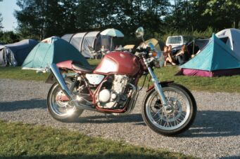 Bald darauf traf Robert ein, zwar auf der SV (ob der jemals wieder mit einer XBR kommt...), aber bei Treffen immer ein sicherer Wert als Teilnehmer oder Organisator. Nachdem wir eine Weile die Campingplatzathmosphäre genossen hatten, beschlossen wir, im Stätdchen etwas essen zu gehen. Am Eingang des Campingplatzes leuchtete uns dann aber etwas entgegen: eine XBR, oder sagen wir mal, eine ehemalige XBR: Ein Umbau, der einem das Wasser im Mund zusammenlaufen liess. Herzliche Gratulation!!