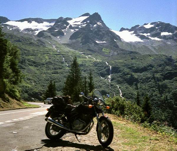 Arndt trennte sich von uns, wir übrigen drei kleinen Negerlein machten uns auf den Weg: Stein am Rhein, Frauenfeld, leidige Autobahnkilometer nach Zürich und weiter nach Glarus und dann der Beginn einer nicht endend wollenden Kurventour: der Klausenpass. Inmitten von tausenden anderen (meistens einheimischen) Mopeds erklommen wir den Pass, fuhren gleich weiter ins Urnerland und bestiegen den Sustenpass.