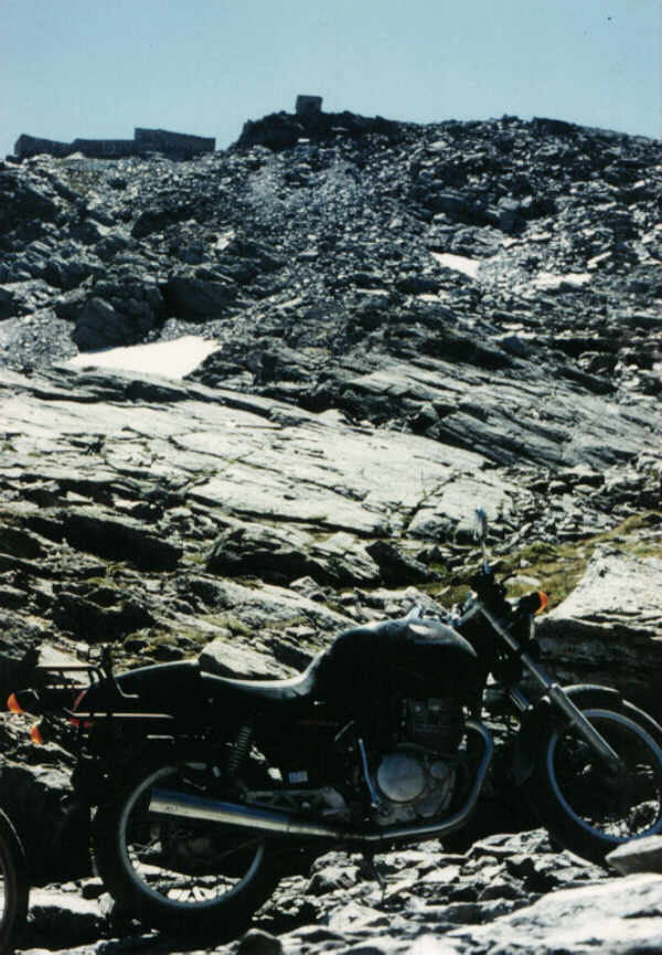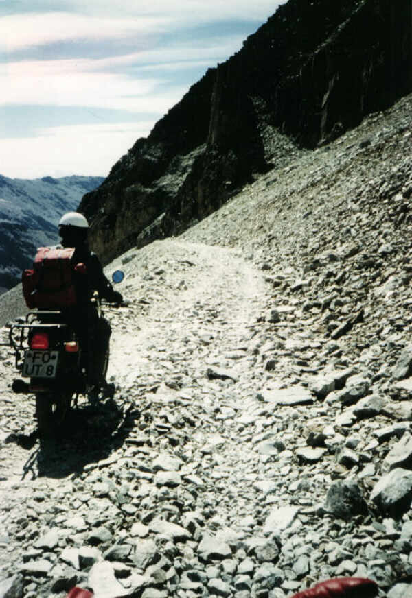 Auf dem Weg zum Mont Chaberton, mit 3134 m absolut höchster anfahrbarer Punkt in den Alpen. Mit Straßenmotorrädern unmöglich. Heißt es...