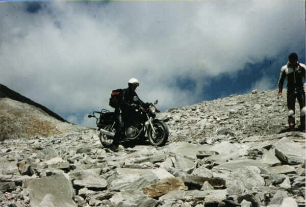In2.800 Meter am Malamot. Das Moped steht und keiner weiß, warum. Noch nicht...