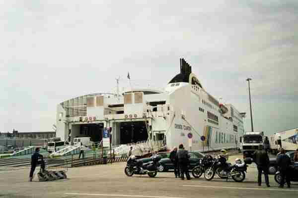 Italienische Autofahrer sind jedoch aufmerksamer als deutsche und wie man sieht sind wir rechtzeitig und wohlbehalten am Hafen und auf dem Schiff angekommen.