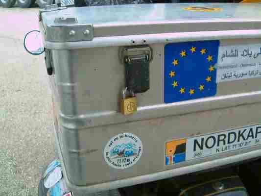 Der Schnee kam, wie man bei Robert vor der Türe bei unserem Vorbereitungstreffen im Januar sehen konnte. Da waren wir dann schon froh, daß wir die Route mit der Fähre (über ADAC gebucht) und nicht auf Achse über die Yugo Republiken und Bulgarien gewählt hatten. So wurden nochmal Internet, Karten und Reiseführer (Lonley Planet, Baedeker, Kultur Schock.... ) gewälzt. Die Checkliste bearbeitet und abgeprüft. Neue Pässe und internationale Führerscheine besorgt (Formular von 1929! - weil der ist auch auf Arabisch). Visas für Syrien beantragt. Versicherungen abgeschlossen bzw. auf Gültigkeit abgefragt. Fotoequipment vorbereitet und (Probe) gepackt. Die in den Reiseforen und vom ADAC vorgeschlagenen Carnet de Passage werden übrigens nicht benötigt und deswegen haben wir auch keine beschafft.