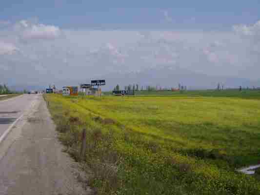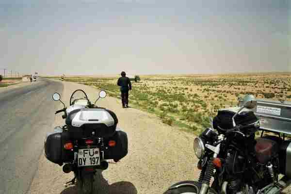 Nach rund 40 Km fiel es Robert ein: Wir hatten unsere Ausweise im Hotel vergessen, also noch ein extra Turn (die Laune verschlechterte sich...) und so gegen Nachmittag trudelten wir endlich in das Syrische Grenzgebiet ein. Das Grenzgebiet ist etwas sensibel, da die Syrer der Meinung sind, daß die Türken das Gebiet unrechtmäßig an sich gebracht haben.