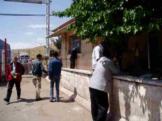 Anschließend leiten uns einige Schlepper Boys zu einem "Chef" der uns ins Büro des örtlichen "Beamten-Pasha" bringt. In Deutsch bzw Englisch werden wir begrüsst, Tee wurde gereicht, nach einer Weile kommt das Gespräch auf die Papiere und diese werden besichtigt. Es wird erklärt, daß (im erwarteten Rahmen) Geld getauscht werden muß und eine Versicherung für das Mopped gekauft werden muß. Soweit so klar. $-Scheine und Papiere wechseln den Besitzer. Einer der Helfer quetschte sich derweil durch weitere Stationen der Procedur.