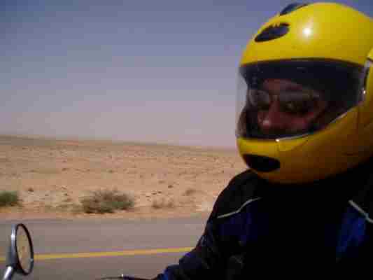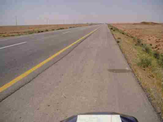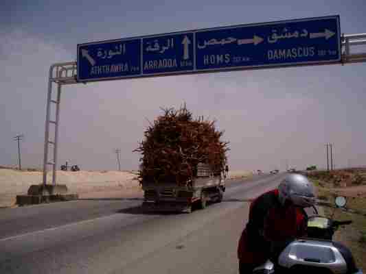 So fuhren wir frei, entspannt und neugierig Richtung Aleppo. Der erste Eindruck von Syrien war recht positiv. Von der Autobahn bogen wir Richtung Aleppo ab Robert (wie immer) voraus und gar nicht so schnell. Da -ich konnte es kaum glauben- Robert flog von der Bahn! Ahhhhhhhhrg. Ganz vorsichtig bewegte ich mich geradeaus an den Straßenrand möglichst ohne Lenk- und Bremsbewegung um nicht auch noch auf Robert draufzufahren. 1. Blick: Robert bewegt sich. Zweiter Blick zurück: Puh Glück - kein LKW im Anmarsch, also schnell zurück und Robert, der sich schon unter dem Moped rausbewegte, schnell samt Moped von der Bahn gezerrt. Die LKWs in der Gegend haben keine Bremsen....... Und vermutlich Differnzialsperre was zu dem spiegelglatt polierten Zustand der Kurven führt.