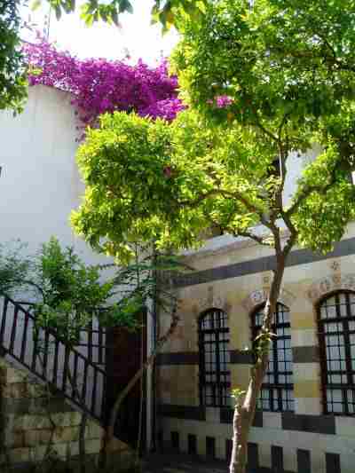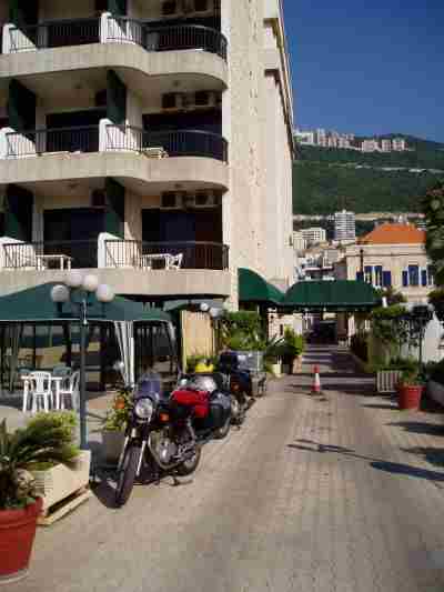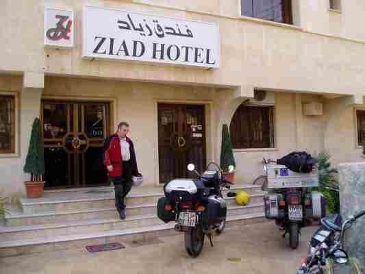 Die Mopeds werden zünftig auf einem öffentlichen Platz geparkt, erster Härtetest der Gastfreundschaft der Syrer, da das Hotel Beit Wakil nur zufuß zu erreichen ist. Da standen die Mopeds dann 3 Tage, trotz spielender Kinder keine Beschädigung und auch der Dänemarkaufkleber mit Flagge war noch dran. Da haben wir z.B. in Frankreich schon schlechter geparkt! In Summe ein stilvolles Ambiente im Handwerker Viertel Jidajeh