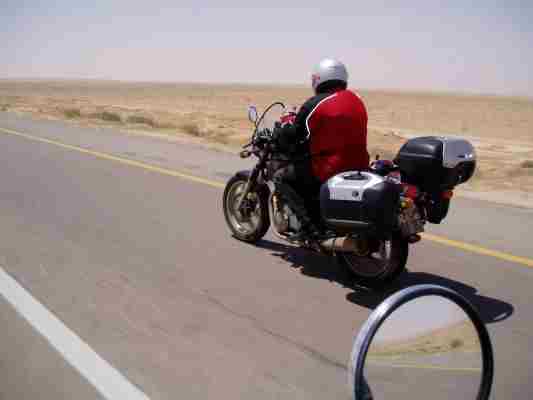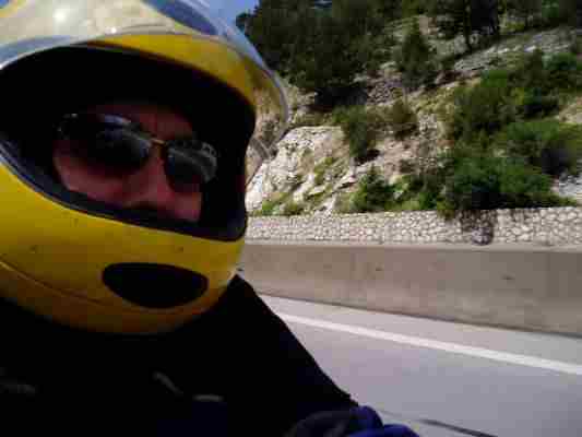 Da ich beim Packen der Koffer streng auf das Gewicht geachtet und das Topcase praktisch leer hatte, war die XBR auch trotz der dicken Koffer noch ganz gut zu fahren. Robert ruderte dank seiner hoch aufbauenden Kiste bei Seitenwind immer wieder mal recht doll. Ein Nachteil der Kiste ist auch, daß trotz der riesenverlängerten Spiegel die Rücksicht eher mau ausfällt. Dies und wohl das noch anhaltende Reiseadrenalin führten zu ein paar spektakulären Überholmanövern von Robert, bei denen ich unsere Reise schon vorzeitig enden sah....