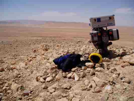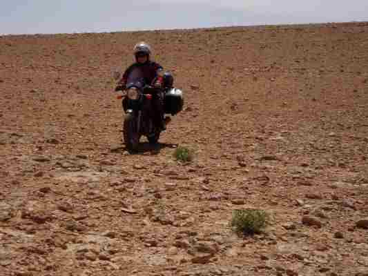Roberts gute Laune erhielt einen Dämpfer als er feststellte, daß Geldbeutel und Motorrad- sowie Kistenschlüssel in der Kiste eingeschlossen waren. Der Ersatzschlüssel war auch noch darin verstaut. Glücklicherweise konnte ich mich noch an BW Zeiten erinnern. Damals wurden bei vergessenem Schlüssel die Spint Vorhänge Schlösser mit einem deftigen Schlag mit der Stahlhelmkante geöffnet. Nachdem in der Tanke kein Werkzeug (und kein Stahlhelm) vorhanden war sah ich einen größeren Stein herumliegen. Mit diesem und einem Schraubenzieher war das Schloß unter dem Gebelle des Tankstellenwachhundes schnell geöffnet. Soviel zur Einbruchsicherheit. Trotzdem hat die Aktion kaum Zeit gekostet und schnell waren wir wieder auf Achse.