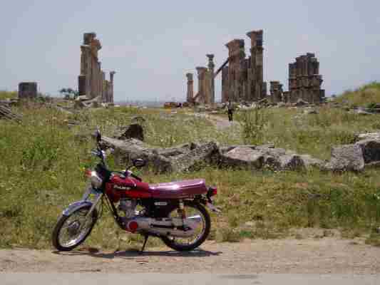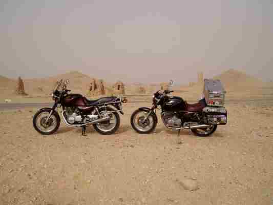 Das einzige einheimische Motorrad, das wir in Syrien gesehen haben, ausser den allgegenwärtigen 250er bub bub bub Hondas und deren Nachbauten...