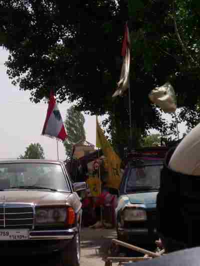 Zwischendrin werden wir noch in eine Liste eingetragen für 100 Syrische Pfund (1,5 Euro) dann wird hinter einer Hütte klar, daß Backschisch gefordert wird, so ganz haben wir das aber nicht geschnallt und so gaben wir etwas wenig (zusammen 25 Euro) das doppelte wäre wohl angemessen gewesen. Egal die "Helfer" zogen etwas entäuscht ab und wir düsten nach Syrien.