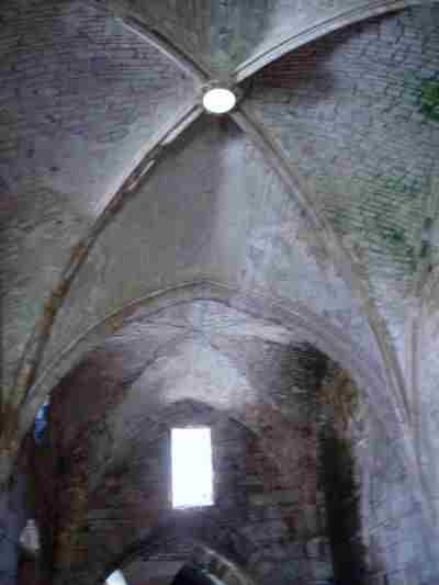 Imposant die gotischen Kreuzgewölbe mit Luft und Sonnenloch in der Mitte. Sobald man einen hellen Gegenstand in den Lichtstrahl hält "erhellt" sich das Gewölbe.