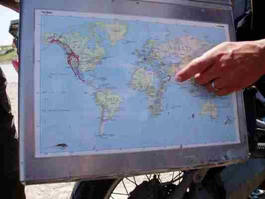 OK meinte Mike die Karte ist vieleicht schlecht gewählt.... Ihre Tour umfasste schon Oman, Jemen, Ägypten und weiter wollten Sie bis Deutschland. Im Prinzip waren die beiden schon überall. Ein Abstecher auf Ihre Internetseite ist auf jeden Fall lohnend.