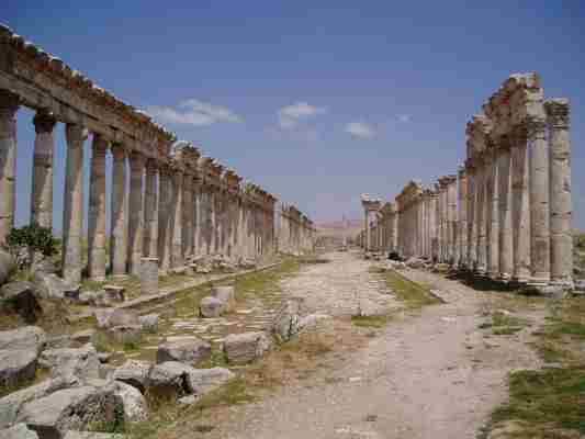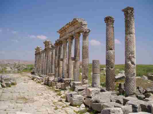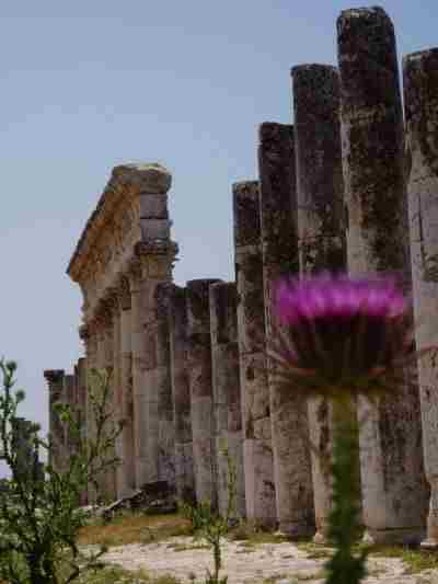 In Apameia einer Stätte, die im wesentlichen aus einer langen Säulenreihe besteht.