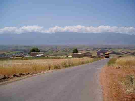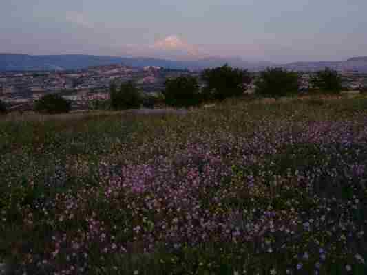Der rote Boden schaut sehr fruchtbar aus und ein frischer Wind erzeugte ein sehr angenehmes Klima. Und was da sonst alles wächst: Wein für Rosinen, Feigen, Mandeln, Aprikosen (Mischmisch)....