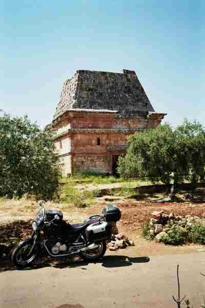 Die Toten Städte bei Al Barah. Die Städte heißen so weil sie aufgrund Verlegung der Grenzen von den Bewohnern verlassen wurden. Als wir dort ankamen und ein wenig ratlos zwishen die Bäume lugten kam ein kleiner Junge aus dem Geüsch gesprungen der uns mit ein paar Brocken Englisch und Arabisch die wesentlichen Gebäude wie Wein und Olivenpresse lager Kirche usw zeigte