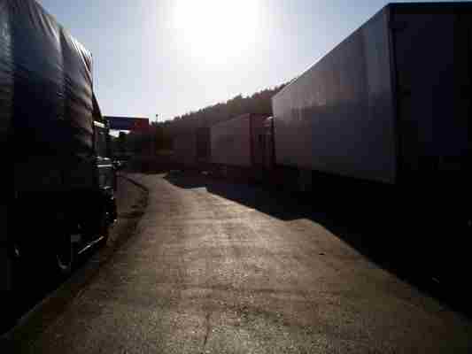 Vor der Grenze stauten sich die LKWs Kilometerweise. Wir fuhren flott vorbei bis zum ersten Häuschen....